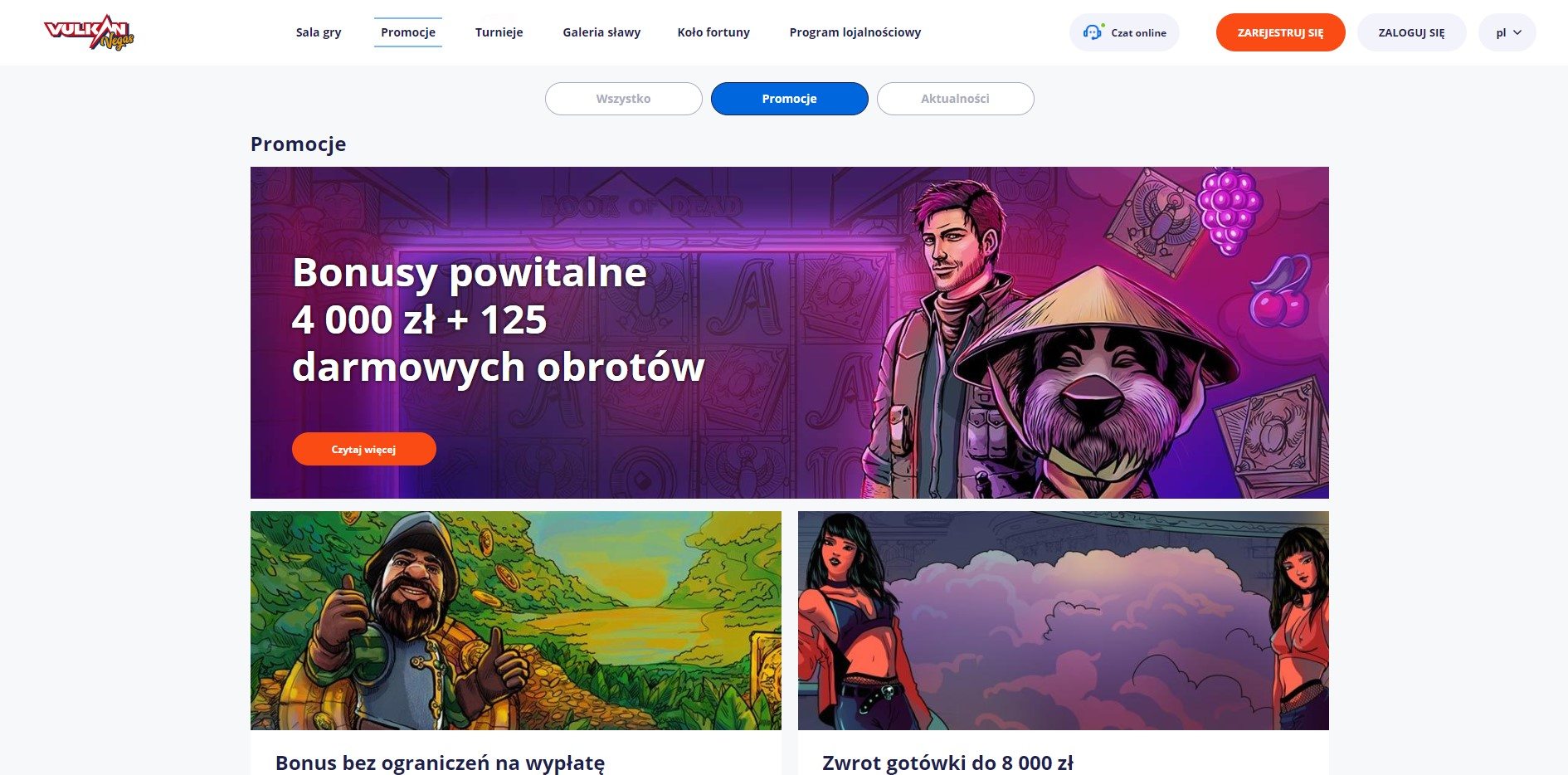 Doskonale wiemy, że jednym z największych oczekiwań budzą zawsze bonusy przyznane po rejestracji w kasynie. Vulkan Vegas online wyróżnia się pokaźnym doładowaniem naszego konta bonusowego na start. Pakiet powitalny wynosi tu aż 300% do kwoty 4000 zł, a także 125 darmowych spinów bez maksymalnego limitu wypłat.